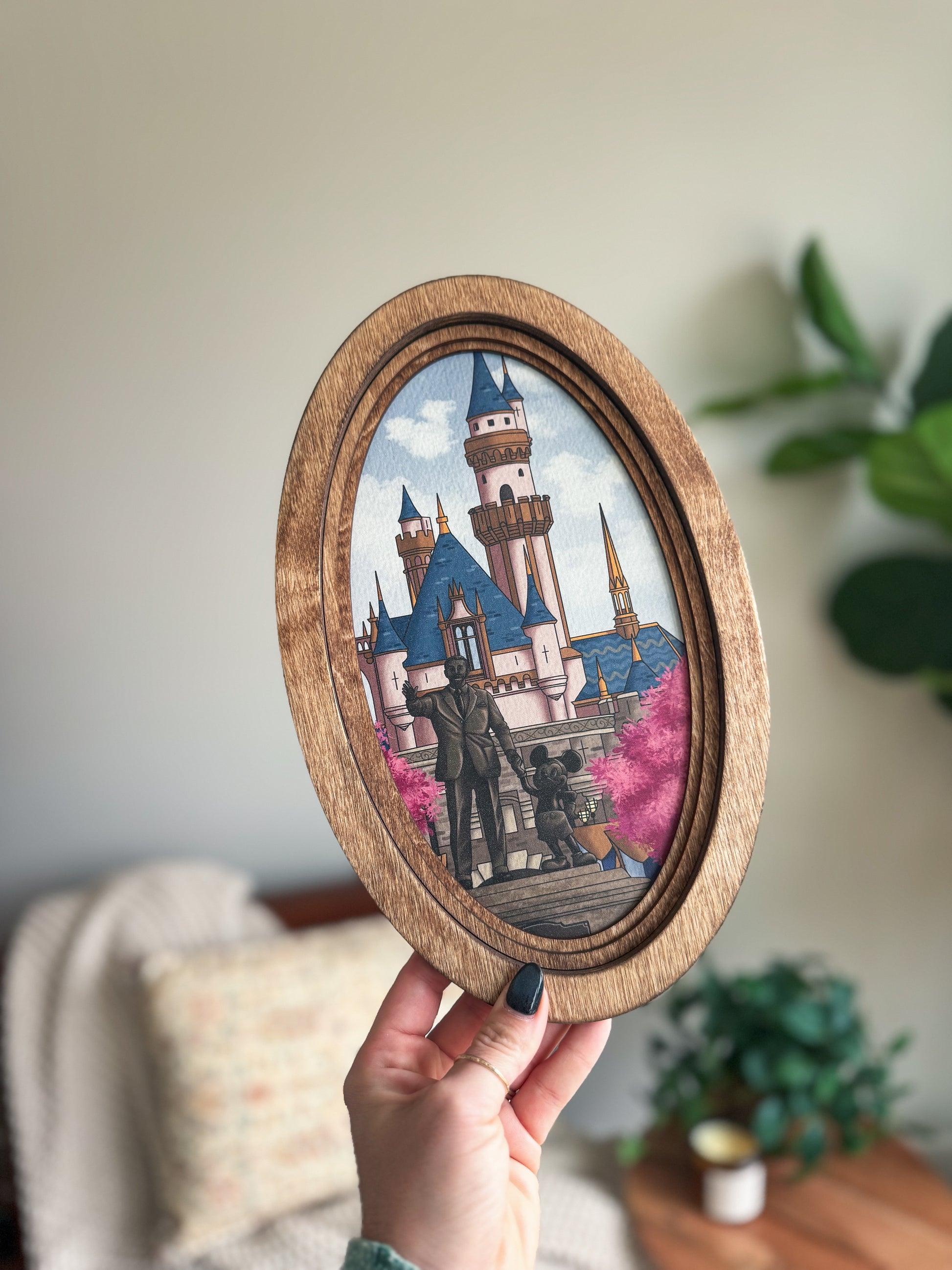Vintage watercolor inspired sign featuring custom artwork, faux multidimensional frame and measures approx.. 8x12". Wood grain/stain shade will vary.. Hanging hardware not included.