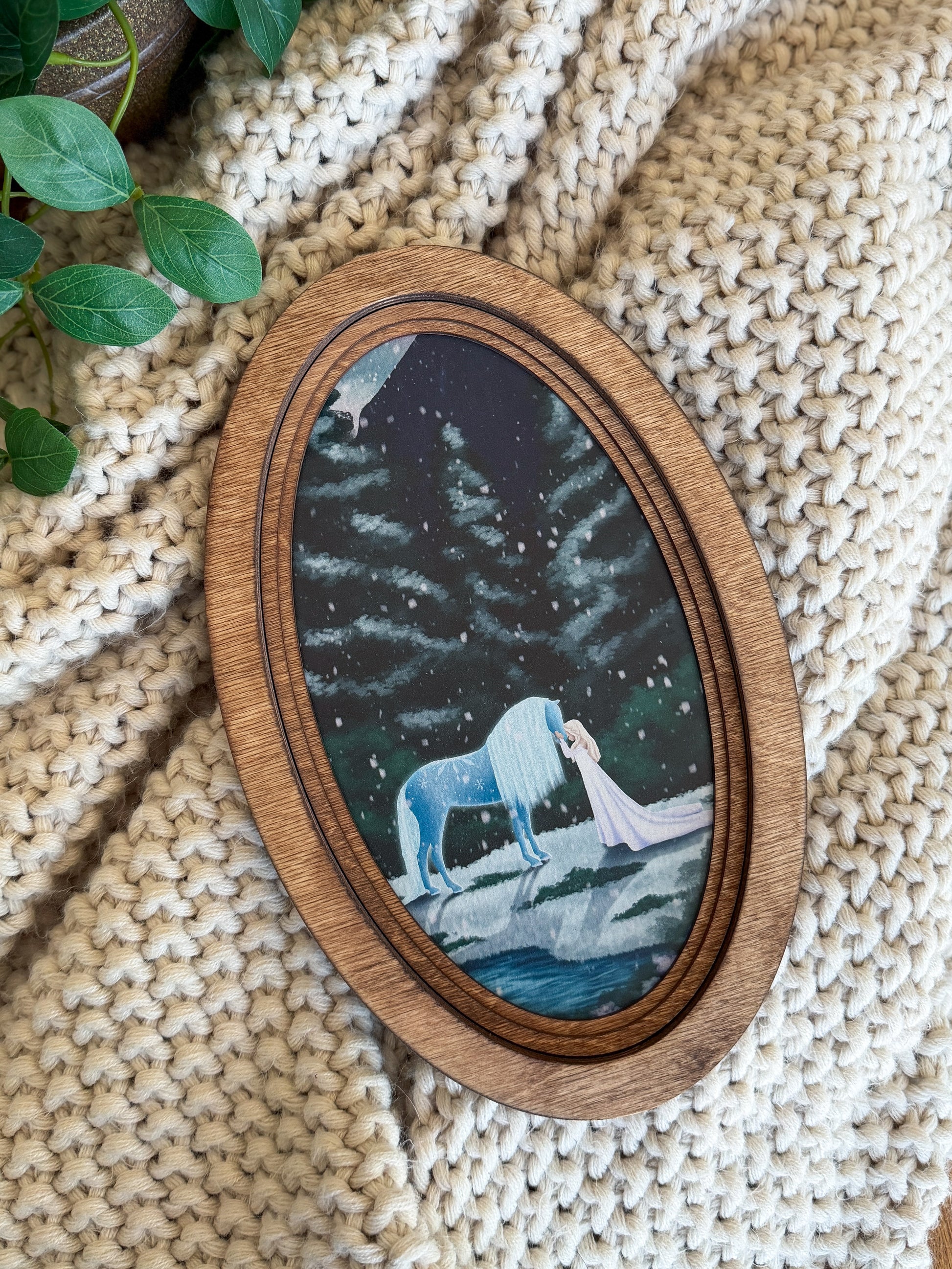 Vintage watercolor inspired sign featuring custom artwork, faux multidimensional frame and measures approx.. 8x12". Wood grain/stain shade will vary.. Hanging hardware not included.