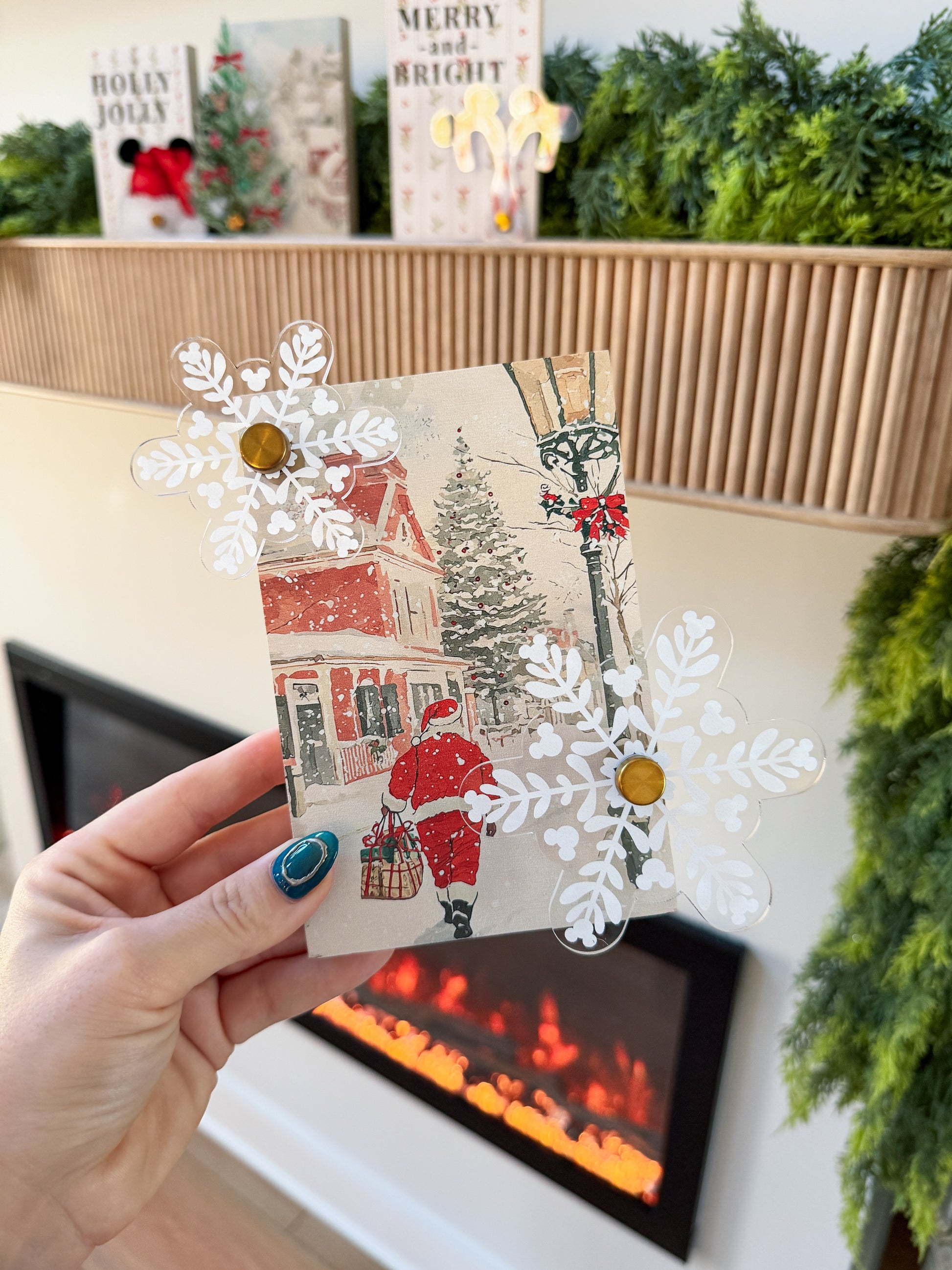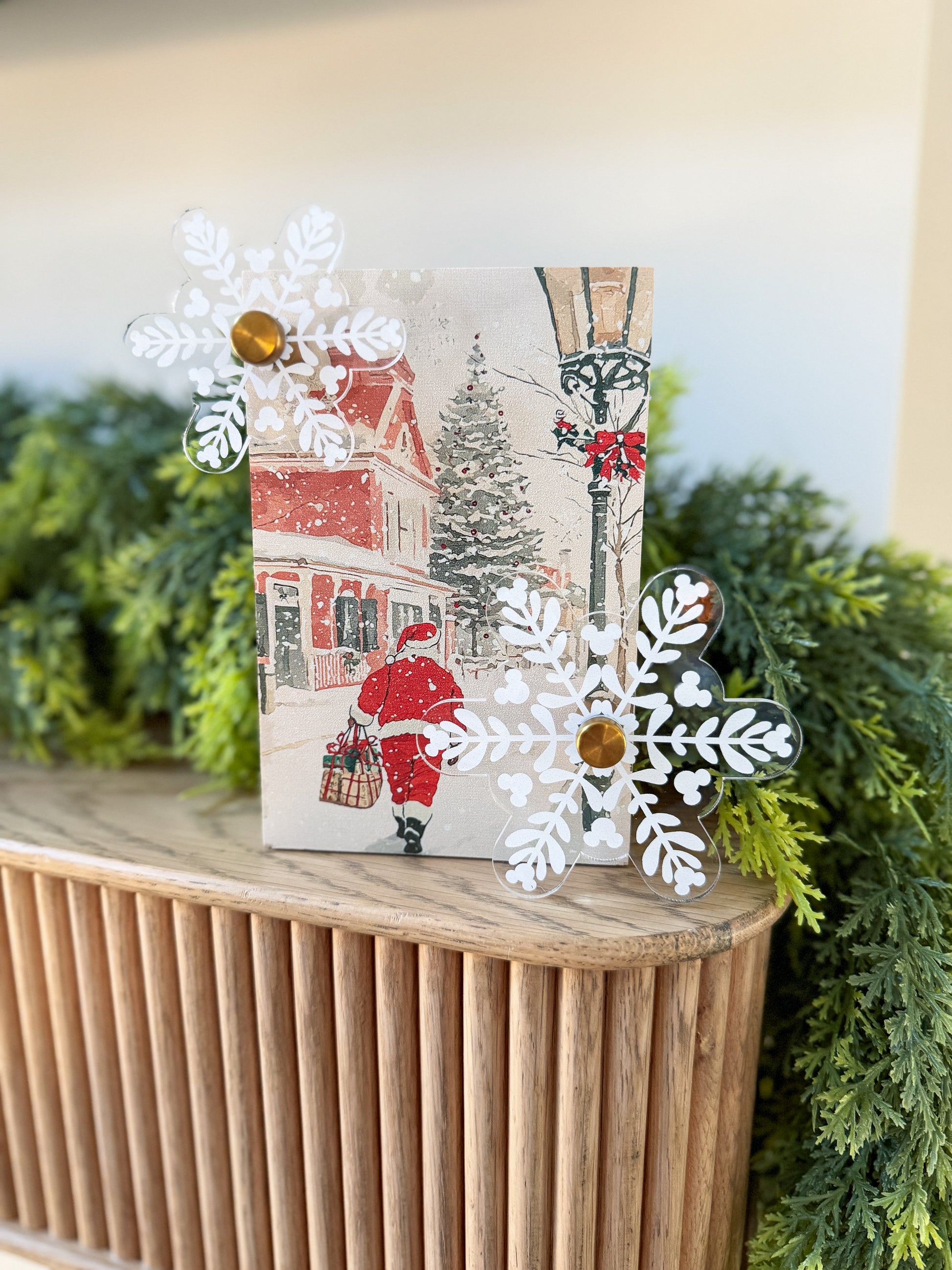 4x6 block featuring snowflake plaque and gold hardware.