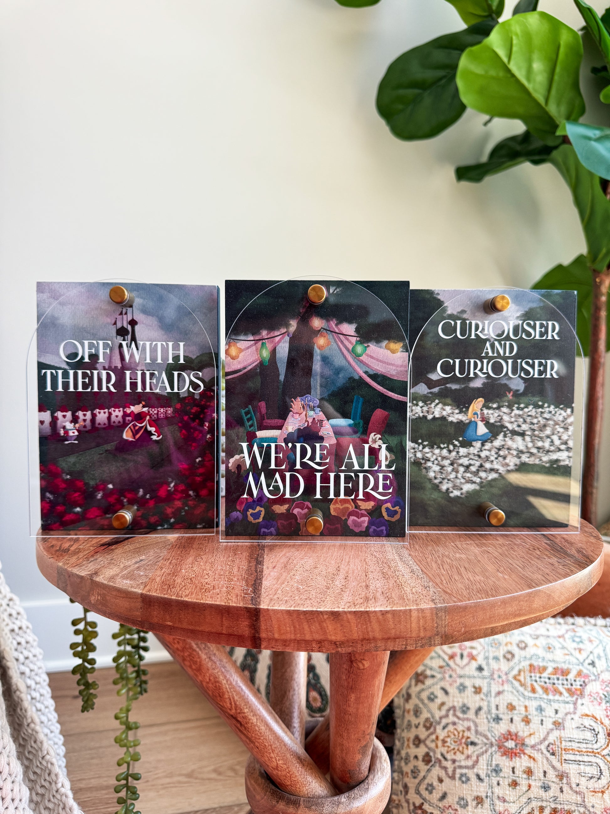 set of 3 5x7" blocks featuring custom printed background and luxe acrylic plaque.